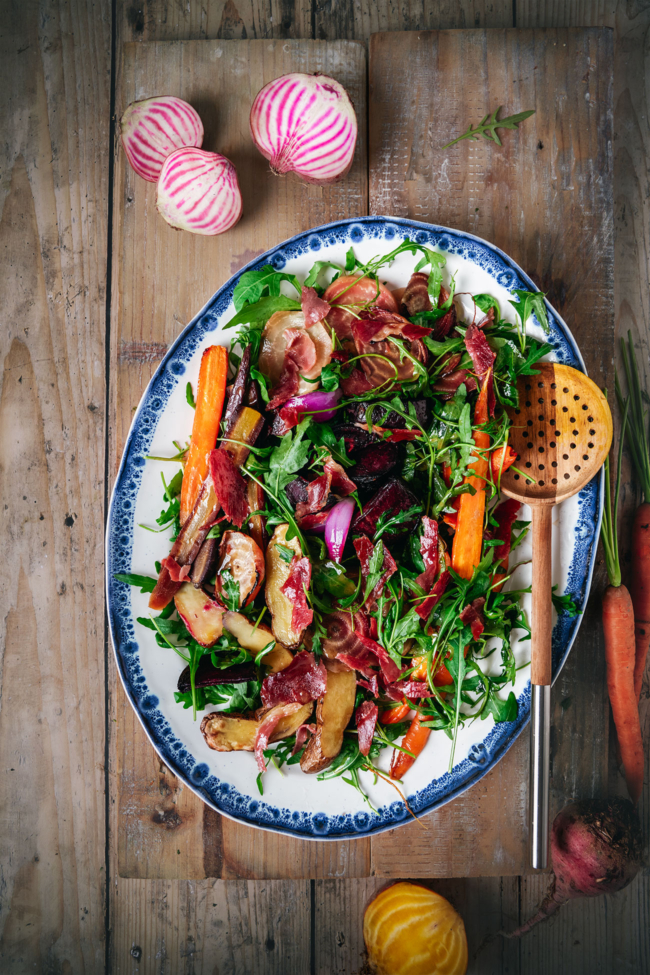 Herbstlicher Ofengemüsesalat mit krossem Jambon de Bayonne g.g.A.
