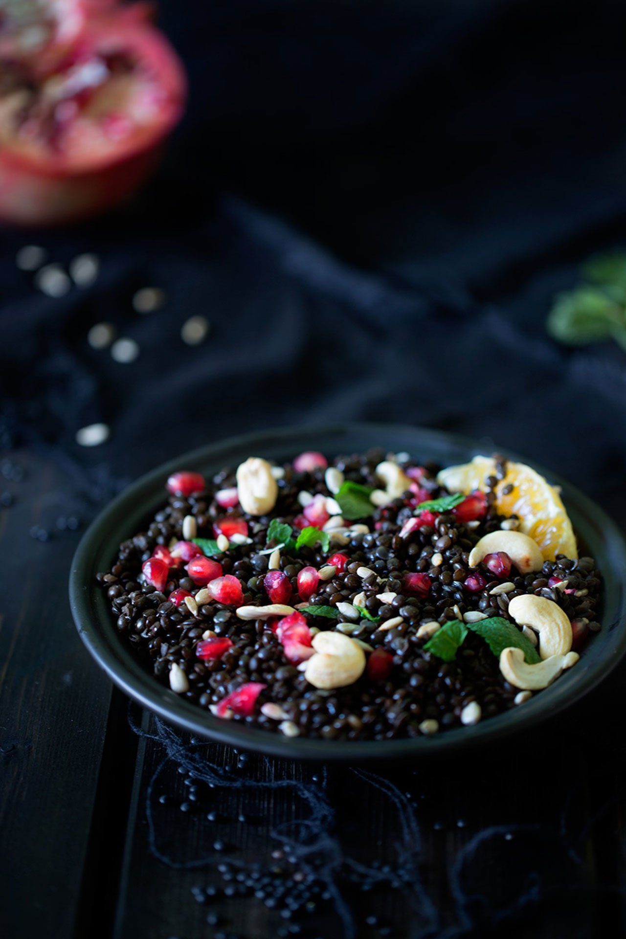 Hallo? Na klar. Ich bin ein dm Fan und das schon seit dem ich denken kann. Mein Badezimmer gleicht einer dm Filiale und besonders die Eigenmarken Balea und Alverde haben es mir angetan. Und kein Urlaub ohne SUN Dance. Apropos Urlaub. Sonne. Die fehlt mir derzeit etwas. Aber mit dem Belugalinsen-Salat habe ich ein wenig Sonne auf den Tisch gezaubert. Ein Wohlfühlessen. Ich liebe die kleinen schwarzen Linsen, die beim Kochen ihr nussiges Aroma freisetzen. Dazu Orange, Zitrone, Minze, Granatapfel…ihr werdet diesen Salat lieben.