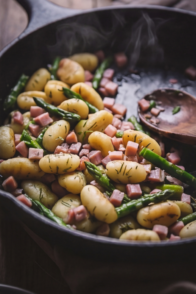 Schnelle Gnocchipfanne mit Spargel