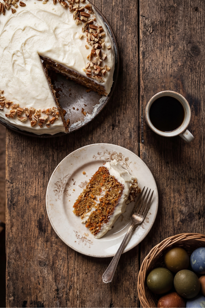 Karottenkuchen ist sowieso die vielleicht erfolgreichste Täuschung der Frühlingsbäckerei. Er sieht nach Landhaus, Familienfest und gepflegter Zurückhaltung aus, ist aber in Wahrheit ein saftiges Zucker-Öl-Konstrukt mit Frischkäsehaube. Also im Grunde genau das, was man an Feiertagen braucht, wenn man nach dem dritten Schokohasen innerlich ohnehin schon aufgegeben hat.