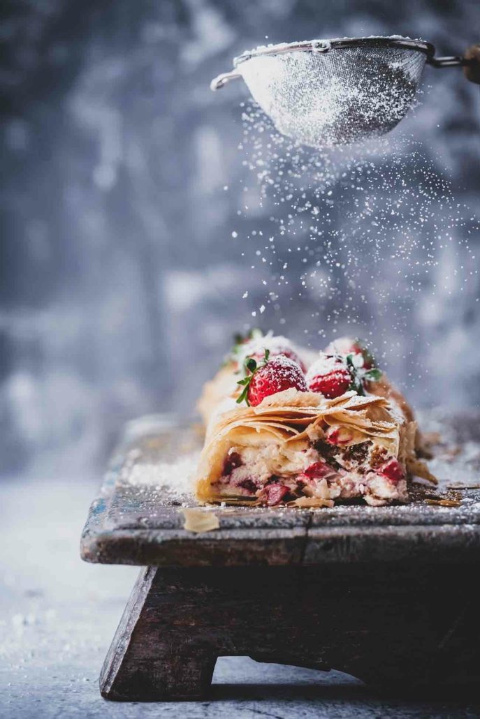 Und ich bin überrascht, dass es gar nicht so schwer ist einen Strudel zu backen. Das schwerste daran war es, eine Packung der Strudelteigblätter (Filo-oder Yufkateig) zu kaufen. Ich wohne ja nicht gerade in der Großstadt, sondern eher ländlich. Da kommt der Marktleiter nicht auf die Idee solche Produkte zu bestellen. Aber es ist geschafft und liebe die Kombination aus Quark, Erdbeeren und Cantuccini Keksen. Habt ihr schon Strudel selbstgemacht?