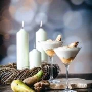 - Birnenviertel mit Mark der Vanilleschote, Apfel- und Zitronensaft in einen Topf geben und aufkochen lassen, dann 5 Minuten köcheln lassen und auskühlen lassen