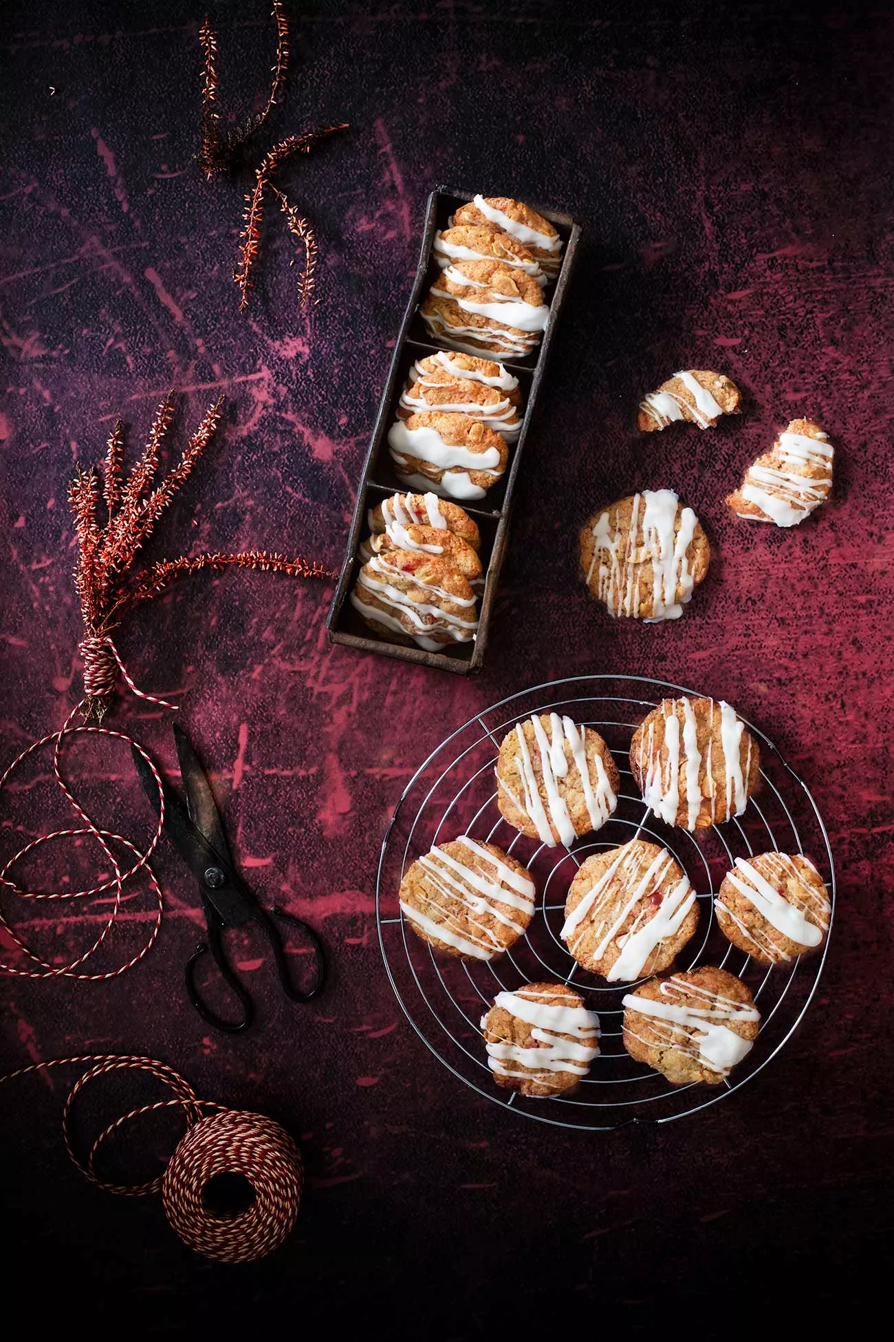 - Puderzucker mit Milch und Zitronensaft zu einer dickflüssigen Glasur verrühren, über die Kekse geben und fest werden lassen