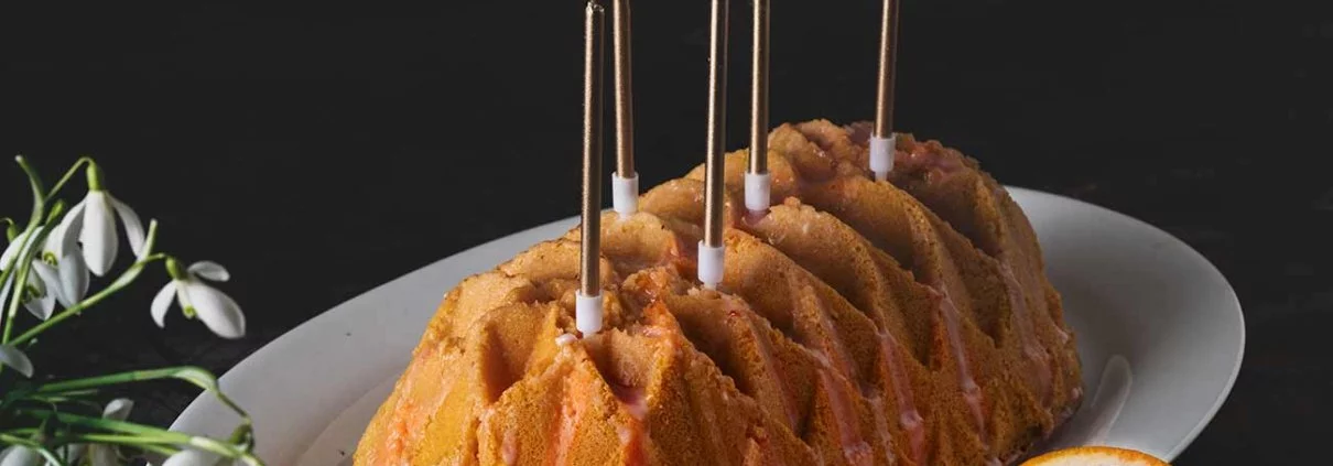 Sehr lecker, hab heute gleich mal die Zutaten besorgt – noch gibt es Bio Blutorangen. Backe ihn am Freitag zur Baby Party (zu dritt) zum Kaffee mit meiner Nachbarin. Muss allerdings gf backen, bin gespannt wie er wird. Gibt es eine Info zu der schönen Backform ich hab jetzt nur Kasten oder Savarin Form zur Hand – geht sicher aber fürs nächste mal. DANKE