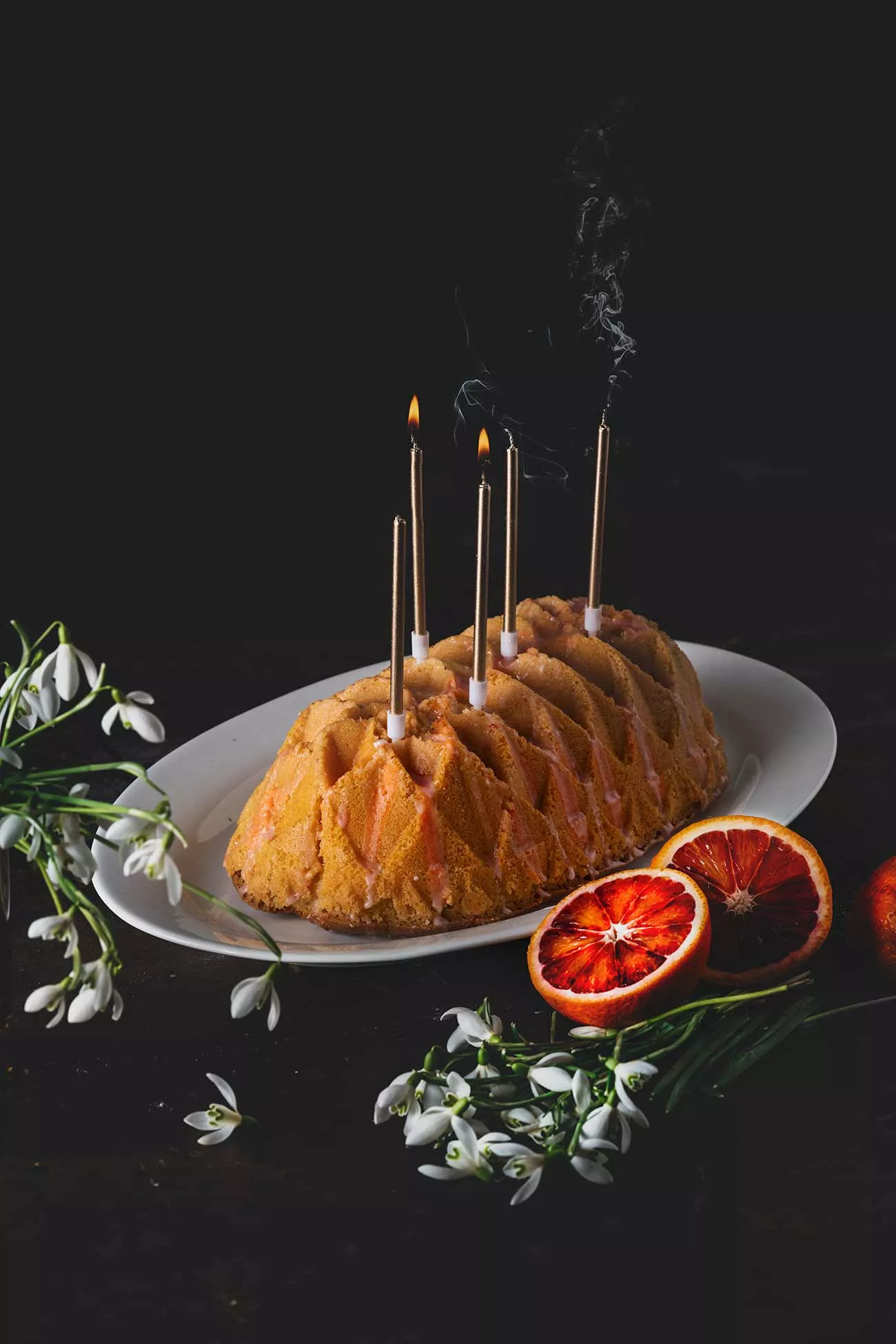 Der griechische Joghurt im Kuchen, in Kombination mit der Blutorange, lässt ihn fast wie ein Softeis schmecken. Ich habe noch ein paar Kerzen auf den Kuchen gepackt. Sah irgendwie besser aus. Zu feiern gibt es ja eh ständig etwas.