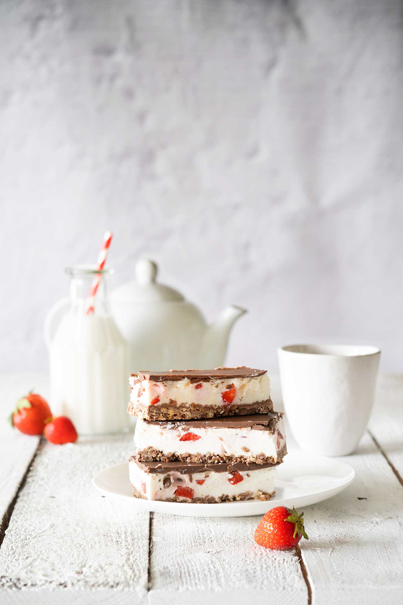 So kann die Woche starten. Mit fruchtig, frischen Erdbeer-Schnittchen. Wer die kleinen Yogurette Erdbeerriegel mag, kommt hier jetzt voll auf seine Kosten, denn der kleine Riegel wird jetzt zum großen Schnittchen.