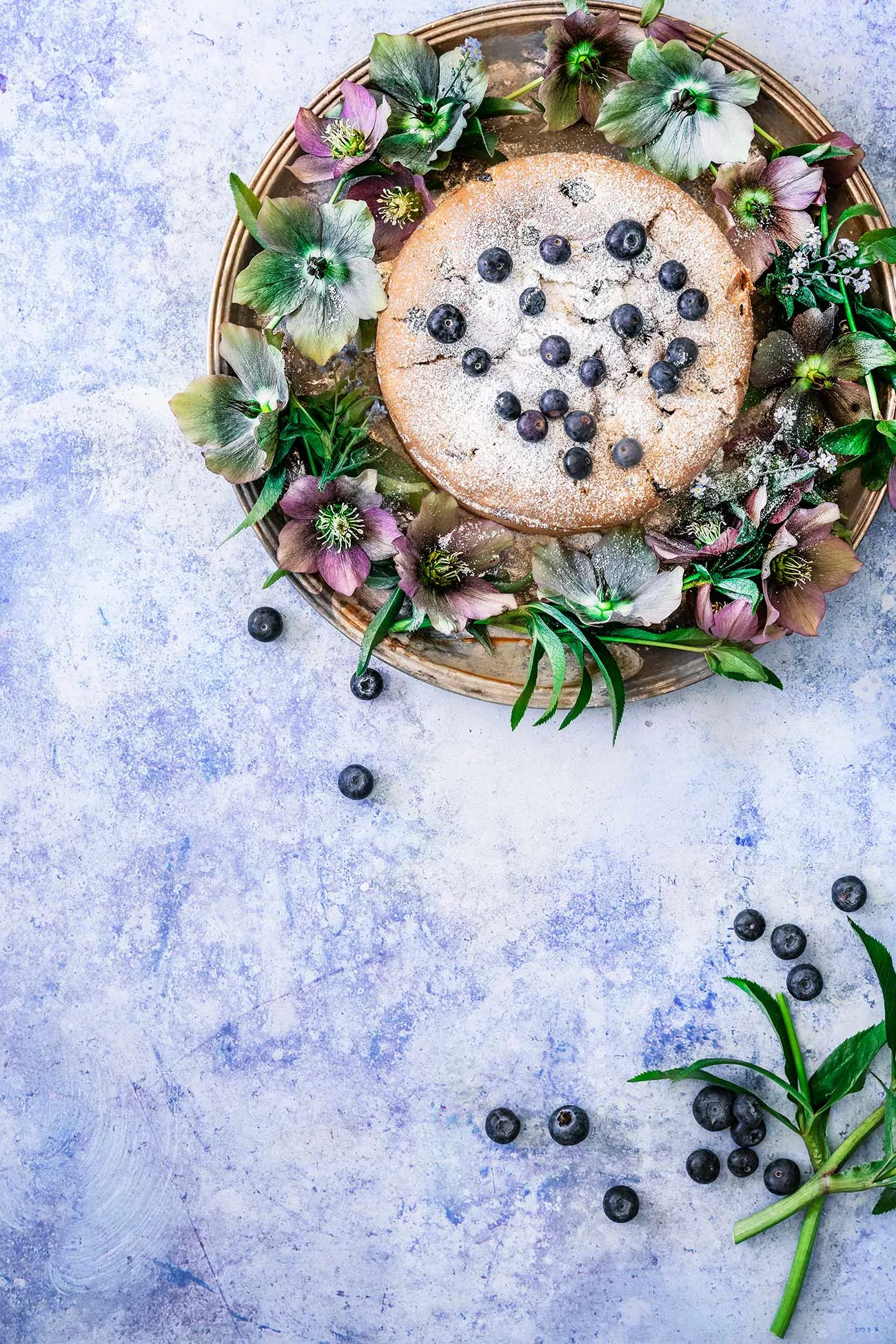 - Abkühlen lassen und vor dem Servieren den Kuchen mit Puderzucker bestäuben und mit den restlichen Heidelbeeren garnieren
