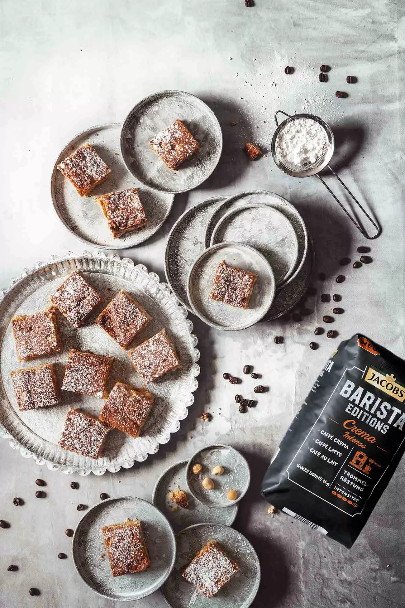Die Blondies bekommen ihren „Kick“ durch das leichte Aroma von Kaffee. Kaffee wirkt beim backen und kochen wie ein natürlicher Geschmacksverstärker ohne aufdringlich zu sein. Wichtig für den Geschmack ist es, immer einen frisch gebrühten Kaffee zu nehmen. Ich liebe daher meinen Kaffeevollautomaten, der mir die feinen Bohnen frisch vor der Zubereitung mahlt. Du liebst Caffè Crema, Caffè Latte oder Café au lait? Dann sind die Bohnen der Jacobs Barista Editions Crema Intense besonders gut geeignet für Dich. Sie haben die richtige Intensität und einen leichten Karamell-Geschmack. Daher passen sie auch so gut in die Blondies. Kaffee und weiße Schokolade sind einfach gemeinsam ein richtiger Genuss.