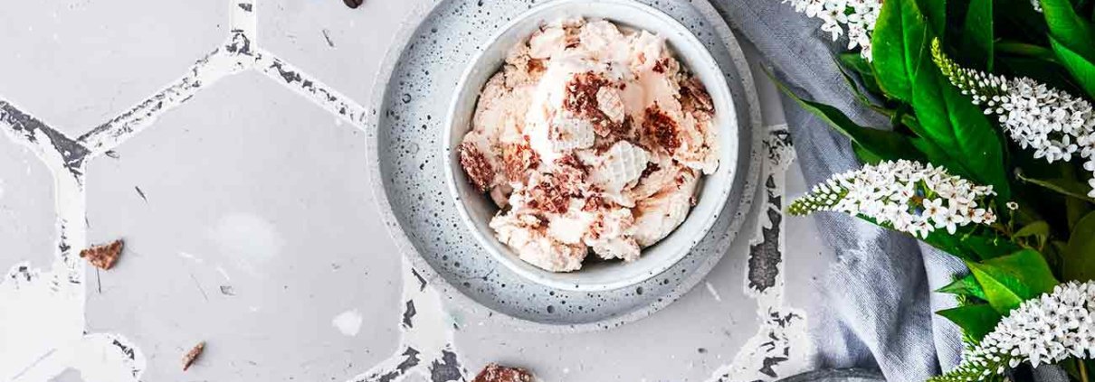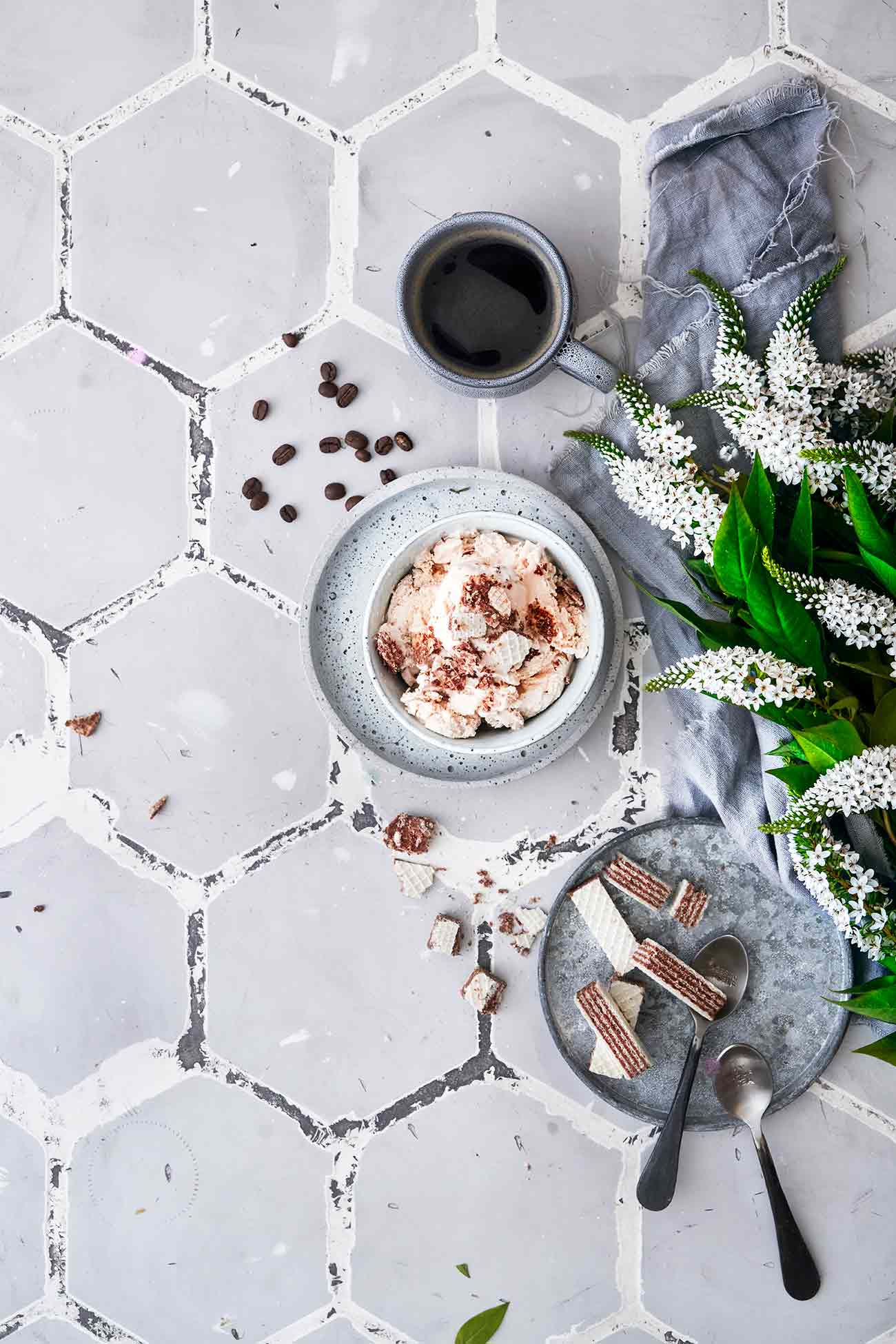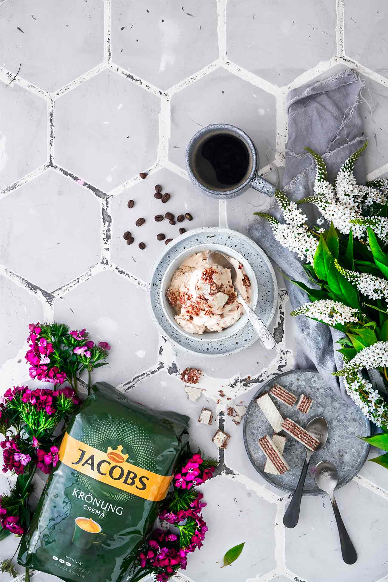 Frozen Joghurt kann eine gute Alternative zu Sahneeis sein, wenn man die richtigen Zutaten nimmt. Ein wenig Sahne schummele ich auch gerne mal darunter. Meine Lieblings-Kombi ist derzeit eine Mischung aus dem leicht säuerlichen Joghurt, etwas aromatischem Kaffee meines Partners Jacobs (für das Rezept nehme ich gerne die Jacobs Krönung Crema) und kleinen Haselnussschnittchen. Lecker.