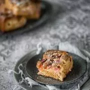 - Restlichen Rhabarber auf den Boden geben und im Ofen 45 Minuten goldbraun backen