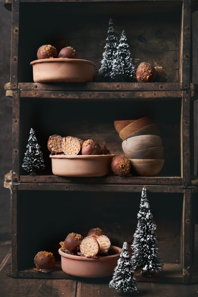 - Masse zu kleinen Kugeln formen, 30 Minuten kühl stellen.