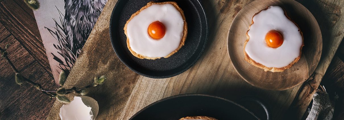 Ran an die Eier. Bevor ihr denkt, dass ich hier tatsächlich ein klassisches Spiegelei servieren möchte, lasst euch überraschen! Diese kleinen Köstlichkeiten sind kleine Amerikaner mit einer dicken Zuckerglasur.