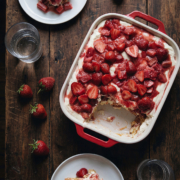 Die Hälfte der Mascarponecreme darauf verteilen. Anschließend die Hälfte der Erdbeer-Rhabarber-Mischung darübergeben.