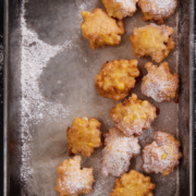Auf Küchenpapier abtropfen lassen. Danach mit Puderzucker bestäuben.