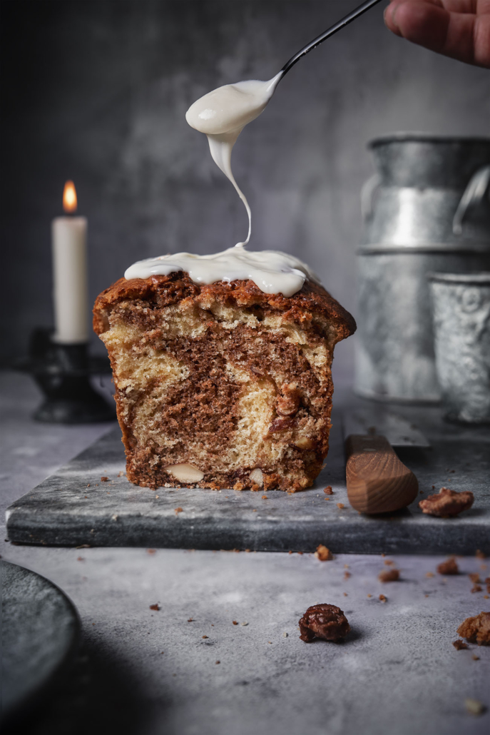 Das Ergebnis? Eine Mischung aus saftigem Zimtteig, knusprigen Mandeln und einer cremigen Glasur, die beim Schneiden leicht bricht. Außen karamellig, innen weich wie Zimtschnecken frisch aus dem Ofen.